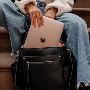 This elegant black vegan leather backpack is perfect for any occasion. Featuring a sleek design, it offers both style and functionality. Ideal for daily use, it complements any outfit.