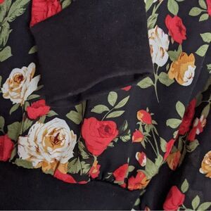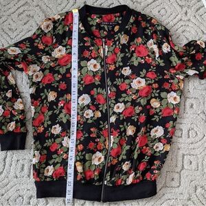 Como BLACK bright floral roses print zip bomber jacket blouse size S @X