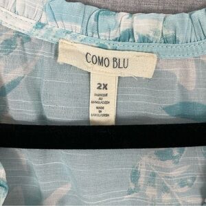 Comu Blu Top / Shirt. Women's tag plus size 2X. Rayon / polyester. Lightweight and airy. Pale aqua blue with floral print. Sleeveless. V Neck.