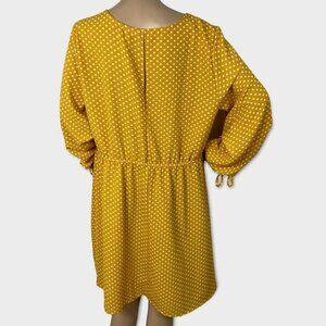 Como Vintage Mustard Yellow Polka Dot Sundress in Women's Size XL. Long sleeves with ties at the wrists. V-neckline. poly and spandex. Retails for $78 USD (approximately $109 CADA). Very good pre-loved condition. No visible flaws.