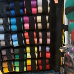 This compact blue sewing kit is perfect for all your sewing needs. It includes a variety of colorful threads and essential tools for quick repairs and projects.
