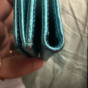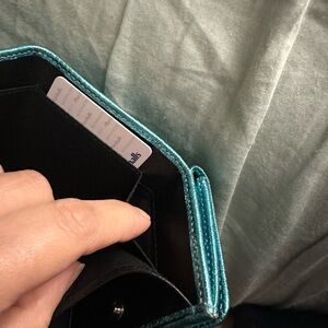 balenciaga compact wallet..very versatile has a lot of compartments for cash,cards and coins and there is an extra pocket in between almost in new condition used twice in excellent condition very bold and shiney beautiful color.