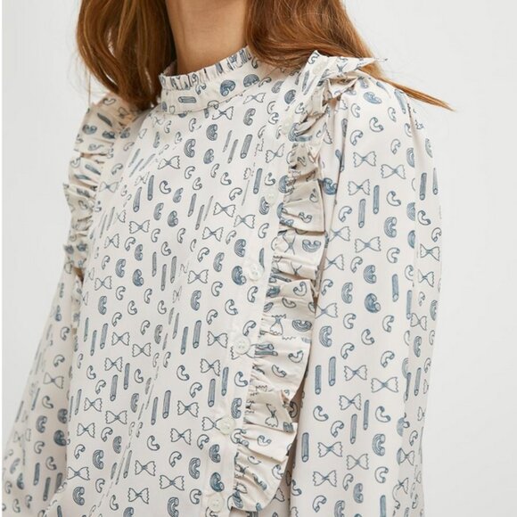 Compania Fantastica Top With Geometric Pasta Print Size XS Ruffles.