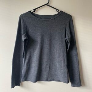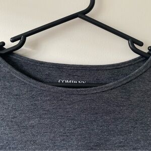 Company by Ellen Tracy Cotton Blend Boat Neck Long Sleeves Tee Grey