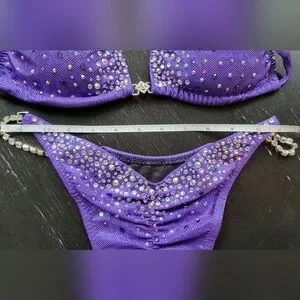 Handmade purple competition bikini for bodybuilding bikini figure competition. Made in Vancouver by the Suit Lady. Modest coverage suitable for WNBF Bikini. I won my Masters Bikini Pro Card in this suit.