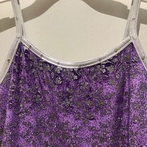 Gorgeous dance costume for ballet, contemporary or lyrical. Stunning violet with sparkly top, Chiffon flowing skirt, and crystal detailing on straps and bodice.
