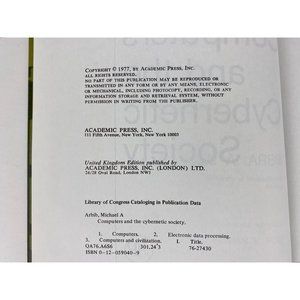 This is a 1977 vintage textbook "Computers and the Cybernetic Society" by Michael A Arbib. The content includes beginner information about what computers do and how they work, plus an examination of the societal impacts to the modern world, from a 1970s perspective.