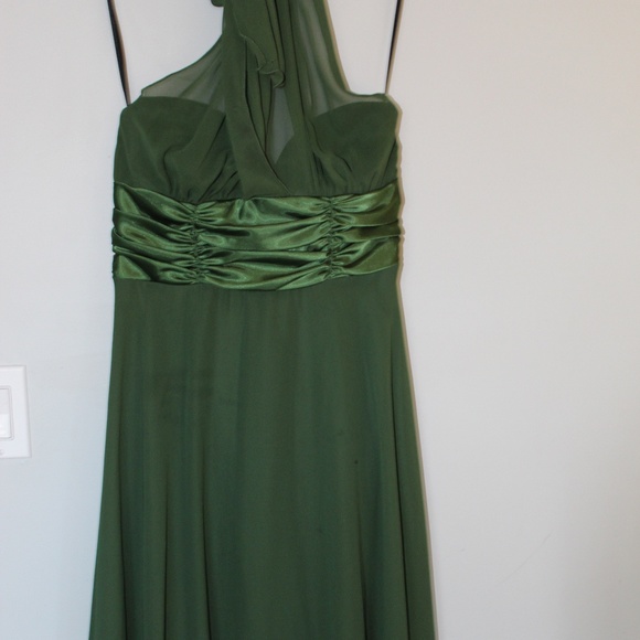 Connected Apparel Formal Ball Gown/Prom Dress/Formal Occasion Forest Green Dress. This dress is absolutely stunning and perfect for a graduation, or any other formal occasion. Plunging v-neck line, belted waist, and delicate flowing fabric to flow down to the knees. I ship within 48 hours of completed payment, to Canada and US. Shipping comes with tracking. Items come from a smoke-free home, however I do have a cat. I am extremely cautious with my clothing and items, but if you have a severe cat