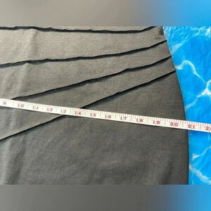 Soft, Extremely Comfortable. Mid Length. Please refer to pictures for Measurements. Lightly worn. DARK BLACK. (Pictures look grey. It’s not.)