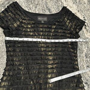 Connected apparel, Size 12 black and gold with frills dress, stretchy.