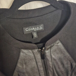 Elevate your style game with this sleek Conrad C Collection bomber zip-up! Combining edgy and feminine flair, its classic design features faux leather paneled accents that add a touch of sophistication. In like-new condition, this versatile piece is perfect for adding a cool-girl vibe to any outfit, from casual hangouts to everyday chic.