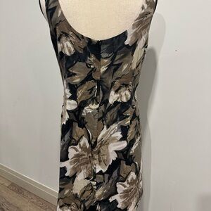 Conrad C Collection Floral Print Dress Brown and Black Mini midi V neck EUC SZ 6