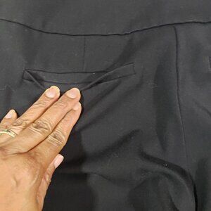 -FEATURES: Front zipper and button closure, faux back pockets.