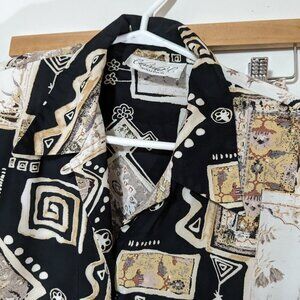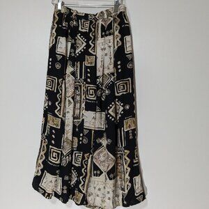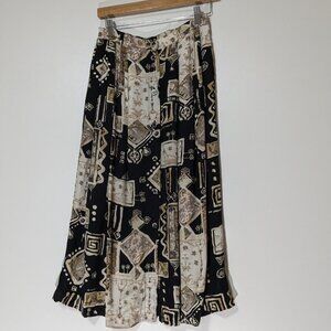 Conrad C Patterned Blouse and Skirt Set Beige Black VINTAGE Size Medium
