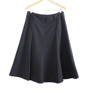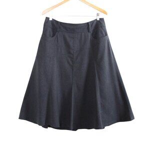 A classic skirt in charcoal grey. The material has a gentle stretch and it’s fully lined. Perfect for spring, fall and winter with appropriate layering. Note*: As shown in last photo, a small loose thread at the waistline but otherwise in great shape. Gently worn, great condition.