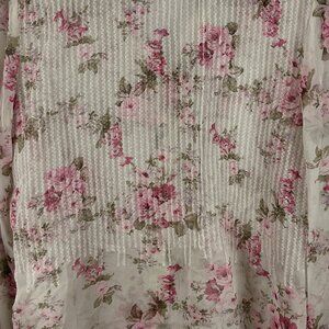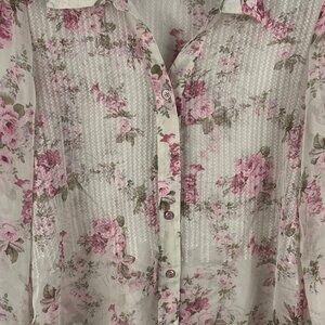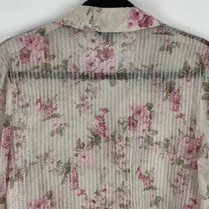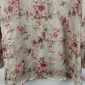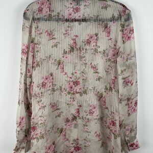 Conrad C Top Blouse Size 10 Pink Floral Long Sleeve Sheer Button Down Polyester
