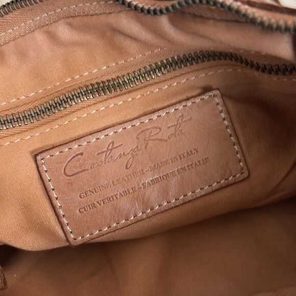 In excellent preowned condition gorgeous Constanza Rota convertible bag, made in Italy, fabulous genuine leather with a stunning woven design, this bag has a detachable shoulder strap, which when removed makes the bag a clutch. The bag is designed with two separate zippered compartments, these are cloth lined (organic cotton), one of them has an interior zippered pocket. There’s also one exterior zippered compartment. Interior is pristine. The overall condition is practically as new.