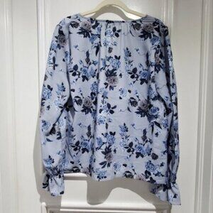 Contemporaine Par Simons- Button Down Boho Chic Loose Floral Poer Sleeved Blouse