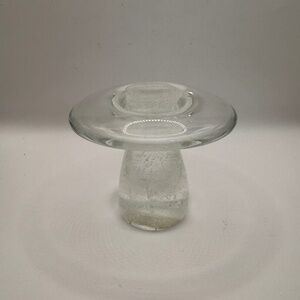 Contemporary art glass mushroom paperweight clear glass with bubbles.