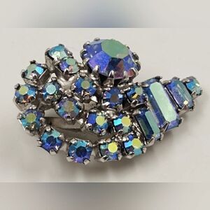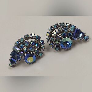 Continental Vintage Blue Borealis Rhinestone Clip On Earrings