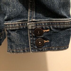Contrast BLUE jean jacket long button front SZ M vintage EUC pockets