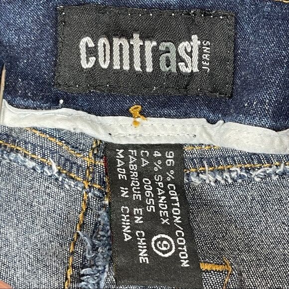 Contrast Denim Maxi Skirt Blue Front/Back Pockets Side Slits Women's Size 9