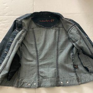 Contrast Womens Blue Denim Jean Jacket Button Closer Size Small