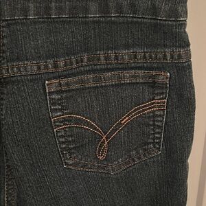 Stylish and comfortable dark blue stretchy pull-on jeans, perfect for any occasion. These jeans offer a flattering fit and versatile style. Very comfortable.
