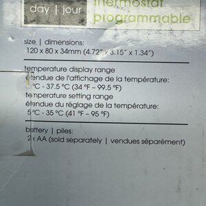 Control Programmable thermostat 5+2 Day Programming with 4 programs per day LCD
