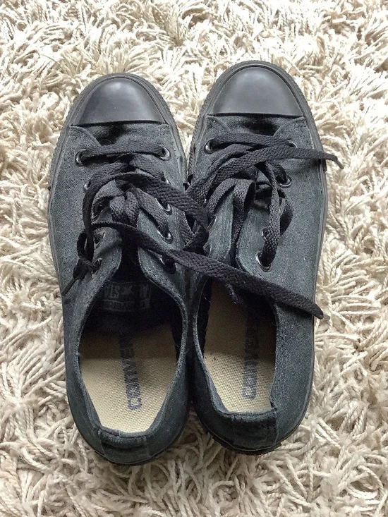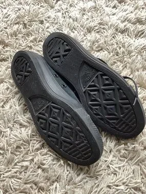 Converse in plain black canvas Worn a handful of times - have been in storage Women’s 5.5 - I wear a 6 and they fit great