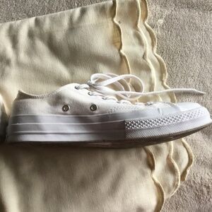Converse All Star canvas shoes. In nearly new condition. Everything intact both inside and out. Machine washable. More of a light beige colour.