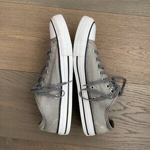 Converse All Star Casual Lo Cut Lace Up Textile Sneakers Grey + White Sz 8.5M
