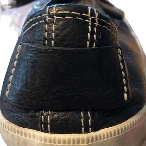 Converse All Star Shoreline UNISEX leather sneakers in black with white stitching and grey laces. Low ankle height is the Shoreline style. Size 7 men/9 women, in immaculate condition!