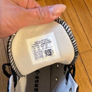 Classic black high-top sneakers. Iconic Converse logo on the side. Durable canvas material. Comfortable and stylish.