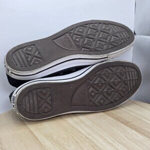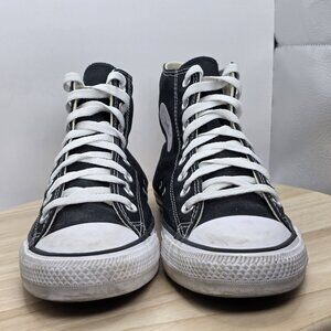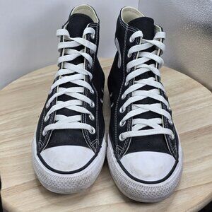 Classic Converse high-tops. Black canvas with white laces. Durable rubber sole.