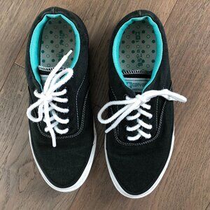 Converse Casual Low Cut Lace Up Canvas Sneakers in Black w Turquoise Trim & White Soles