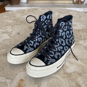 New, unworn Converse Chuck 70 Reflective Leopard Hi Top sneakers.