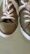Classic low-top sneakers in a beautiful medium olive green by Converse. Features white laces and white sole, but with satin green fabric! These are truly beautiful special edition shoes that will have people giving you compliments on the daily! Perfect for any fit!