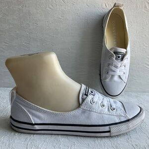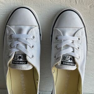 In very good to excellent pre-loved condition, white All Star Converse Ballet Slip Ons