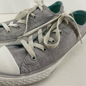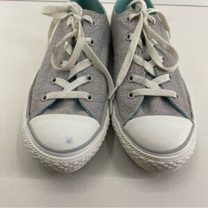 Converse Double Tongue Low Top Silver Sparkle Shoes Turquoise inside Size 3 youth Excellent preowned condition-light wear, one mark on toe -Offers welcome and encouraged! ⭐️ - Please look at all photos for any wear /condition - From Smoke Free Environment - Pair shown is the exact item you will receive. - No box included ***Be sure to Follow! I post several shoes and items daily!*** Spring, summer, active, sparkle, fringe, coastal cowgirl, festival, fancy, casual