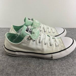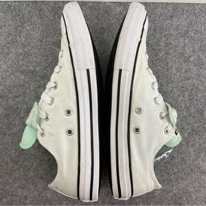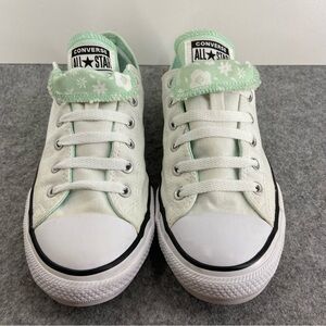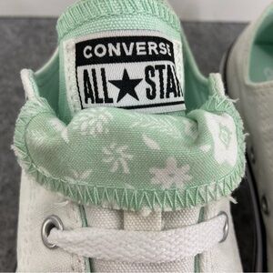 Converse Double Tongue White Low Tops With Mint Green Floral Accents Size 5