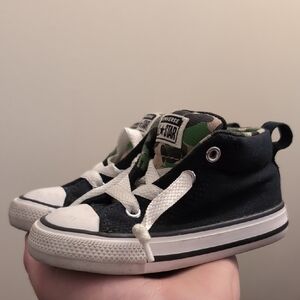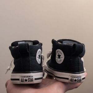 Stylish and comfortable, these Converse high-top sneakers are perfect for your little one. Featuring a classic black design with durable construction, they offer both fashion and function.
