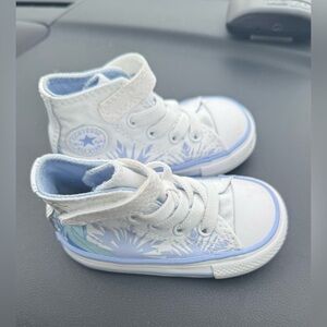 Stylish and comfortable, these Converse high-top sneakers are perfect for kids. Featuring a classic white and blue design, they offer both durability and style for everyday wear.