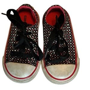 Stylish Converse kids sneakers featuring a black star pattern. Laces are in good shape with metal grommets, rubber sole. Perfect for everyday wear.