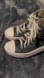 Preowned converse move high tops in size 8 women’s. See photos for wear details and torn fabric on one inner heel.