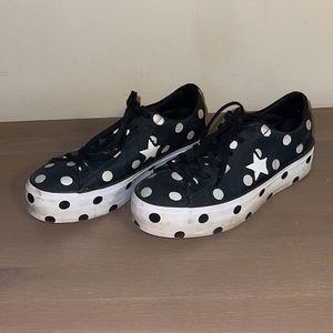 VGUC Converse One Star black and white polka dot platform sneakers in women’s size eight (8).