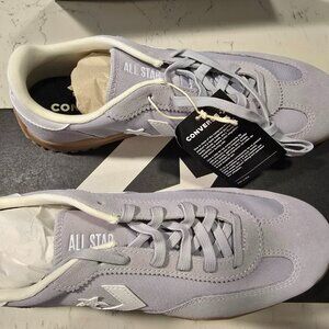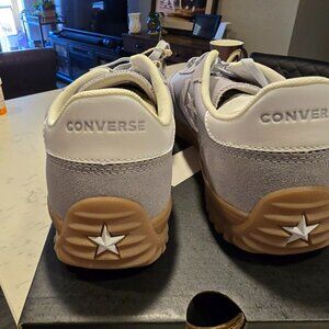 The product is a pair of Converse Run Star Trainer OX sneakers in size 10 for men, featuring a stylish gray color with a star theme. The sneakers belong to the Converse Run Star product line and are designed in a sleek and modern sneaker style. Perfect for athletic activities or casual wear, these Converse sneakers offer a trendy and comfortable option for men looking for a versatile and fashionable footwear choice.