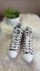 Elevate your style with these chic black and white high-top sneakers. Perfect for any casual outing, these shoes offer both comfort and fashion.