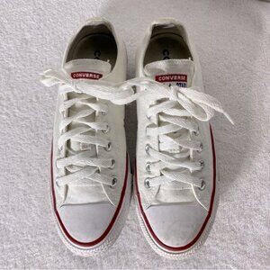 Converse Unisex White With Red Trim Lace Up Low Top Sneakers 7