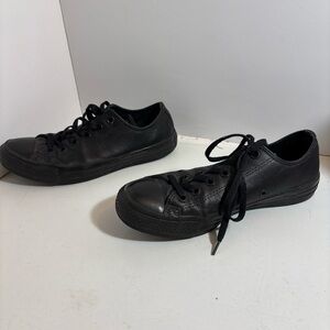 Converse all star black leather low top lace up shoes in size 7 women’s